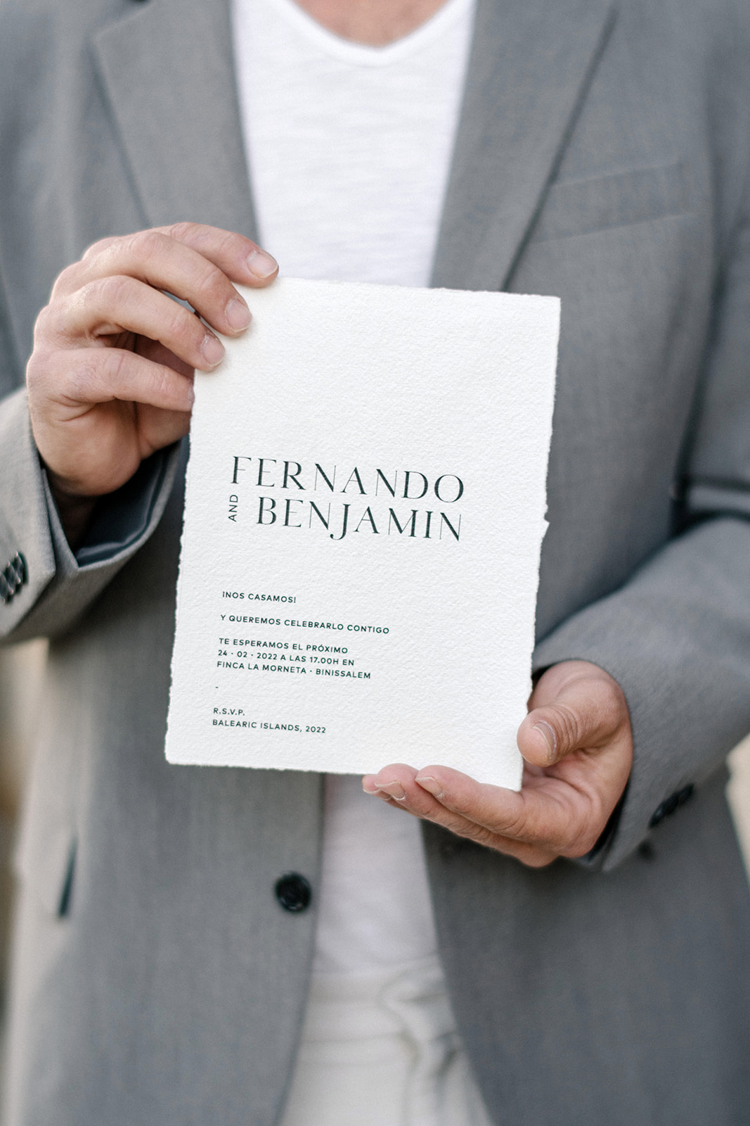 Papelería nupcial diseñada y producida para editorial en Mallorca, Islas Baleares, España (marzo, 2022)